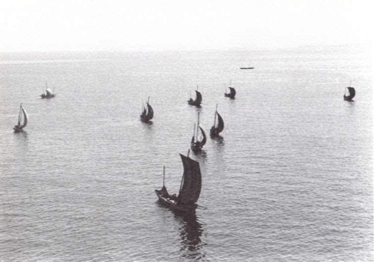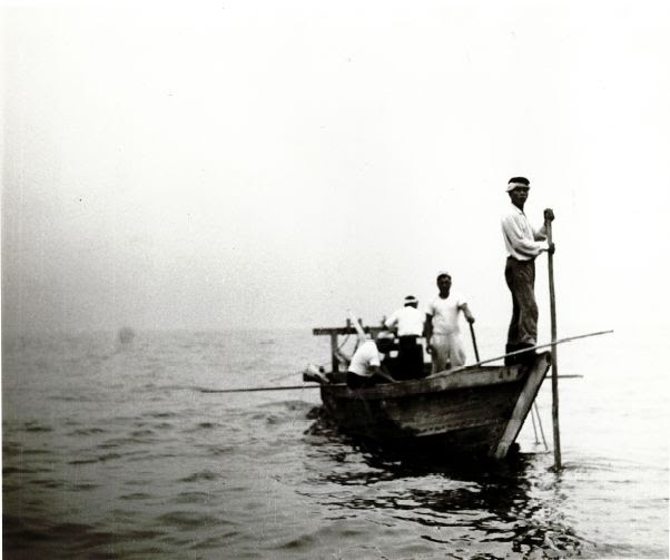 昭和30年代まで横浜の海では漁業が盛んでした。爪がついた籠で海底を掘り起こしながら貝を獲る貝捲漁(かいまきりりょう)。潜水服を着て海底に潜り、海底にいるタイラ貝を獲る潜水漁。箱眼鏡を使って水中を覗きながら長い柄をつけた矠(やす)で海底にいるカレイやサザエ、伊勢海老などを獲る覗突漁(みつきりりょう)。帆走で底引き網を引いて、海老やシャコを獲る打瀬船漁。回遊してくるイワシを刺網で獲る刺網漁。2艘の船に分かれて、網で魚の群れを獲る巻網漁または六人網漁。針一列に流して仕掛け、穴子を獲る延縄漁(はえなわりょう)。